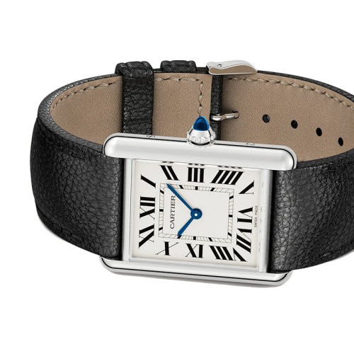 【包税】 CARTIER/卡地亚 22年秋冬新款 七夕坦克系列 男女同款白色表盘石英机芯精钢表壳黑色粒面小牛皮表带大号腕表33.7*25.5毫米WSTA0041