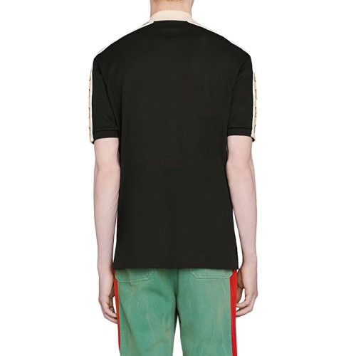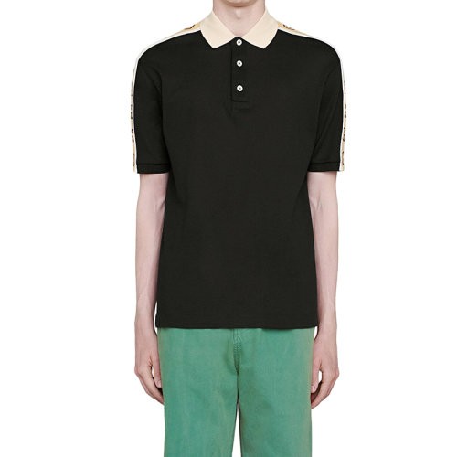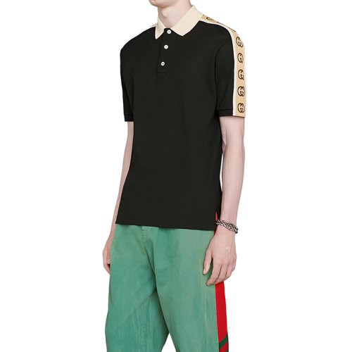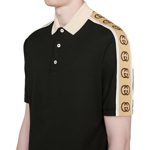 【服装】GUCCI/古驰 22年春夏新款 男士黑色棉质混纺弹力面料饰互扣式双G条纹短袖polo衫(衣服)598949XJB0Q1082