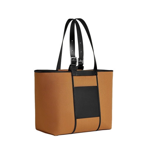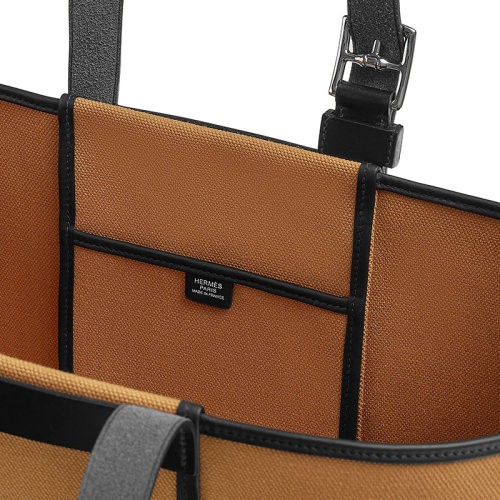 【新品包包】HERMES/爱马仕24新款 男士棕黑混色帆布配牛皮单肩手提包H082768CKAD
