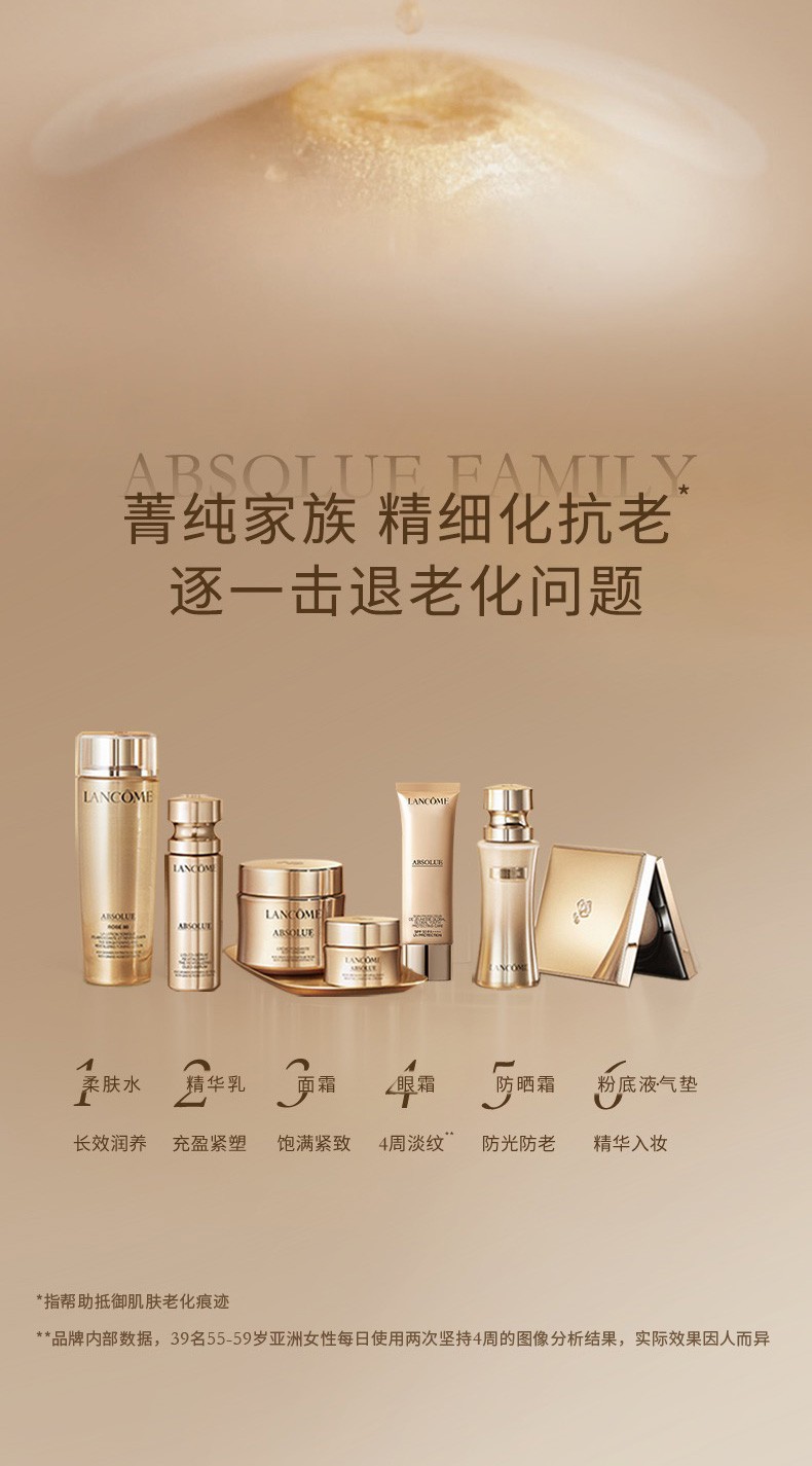 Lancome/兰蒄菁纯臻颜卓越赋活修护保养套组(菁纯美容液150ml,轻盈版乳霜60ml,滋润版乳霜60ml,精华30ml,眼霜20ml,包包)(化妆品)